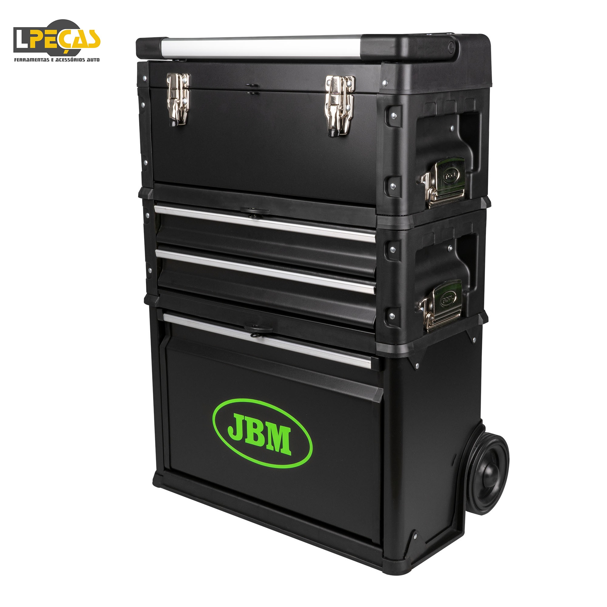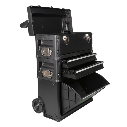 Os diferentes módulos têm uma grande capacidade e um design ergonómico que integra um carrinho como porta-paletes, facilitando o transporte de uma grande quantidade de ferramentas.