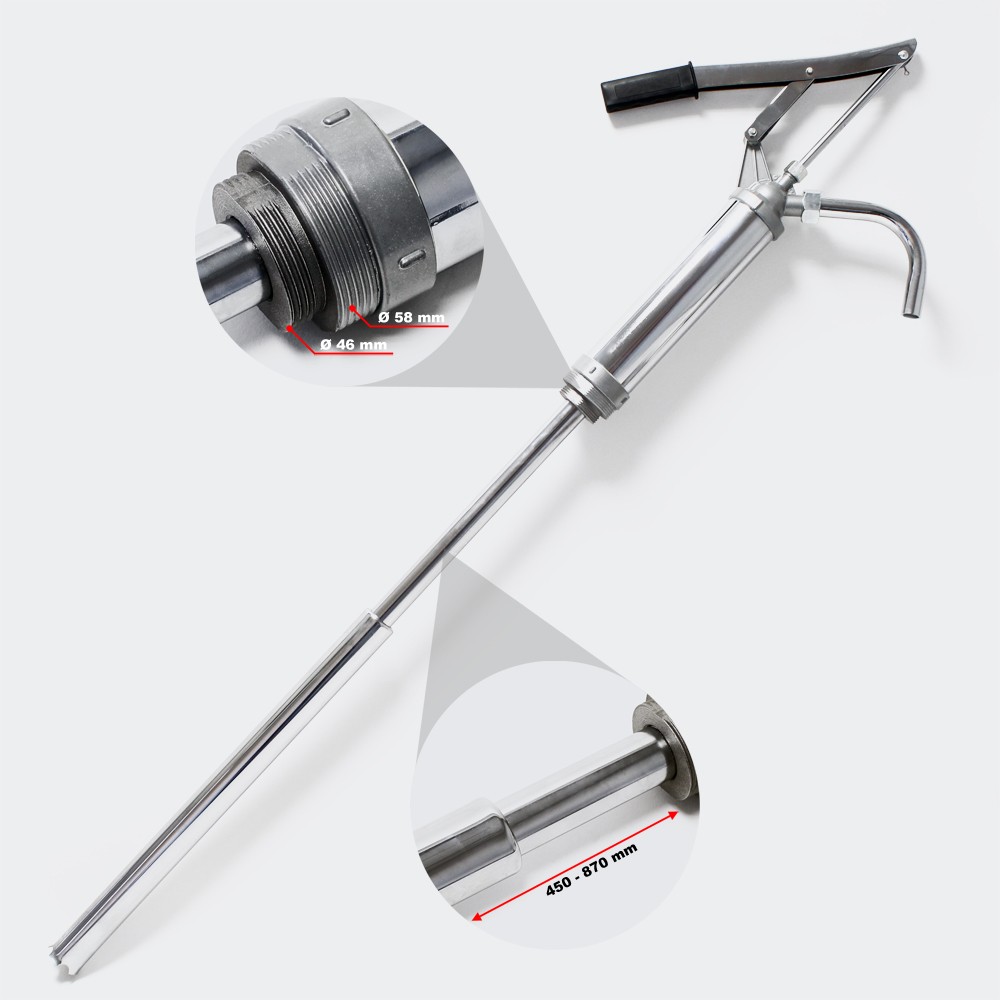 Bombas de transfega manuais novas, aptas a utilizar em tambores, independente da dimensão sendo que são telescópicas e adaptam-se à dimensão do recipiente (até 200Lt).