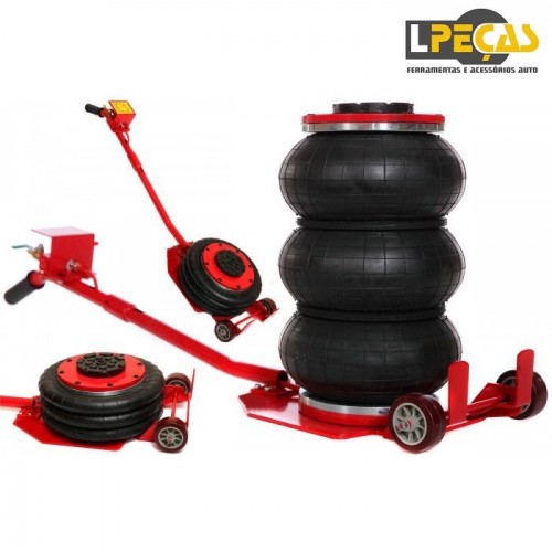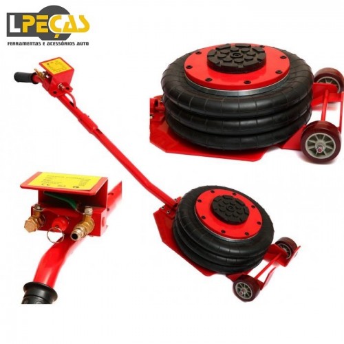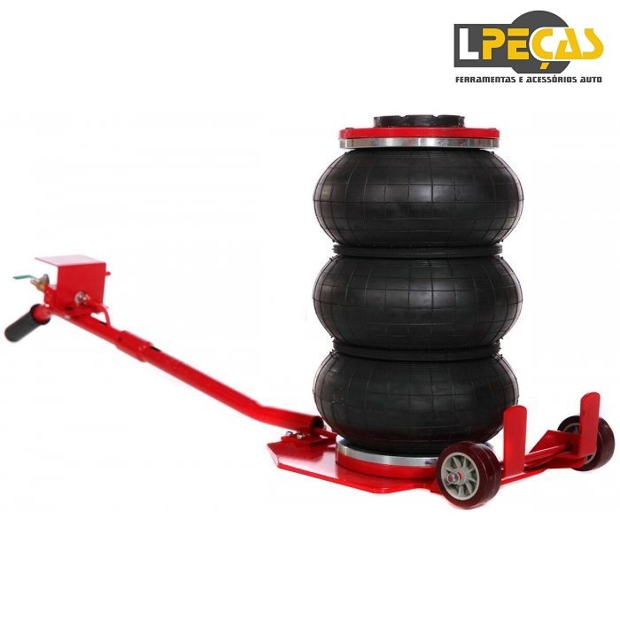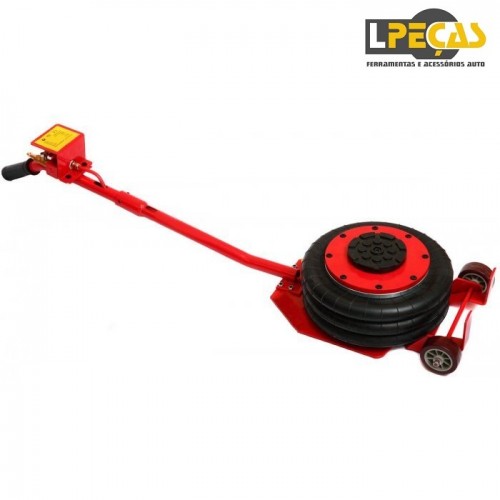 Macaco pneumático tipo airbag com capacidade de 3.900 kg. Possui altura ajustável de 140 a 450 mm, ideal para diferentes tipos de veículos, de carros a SUVs. Conta com alça longa e rodas giratórias que facilitam o posicionamento e operação rápida em poucos segundos. Estrutura reforçada em aço, airbag triplo resistente e base com acabamento antiferrugem garantem estabilidade, segurança e durabilidade.