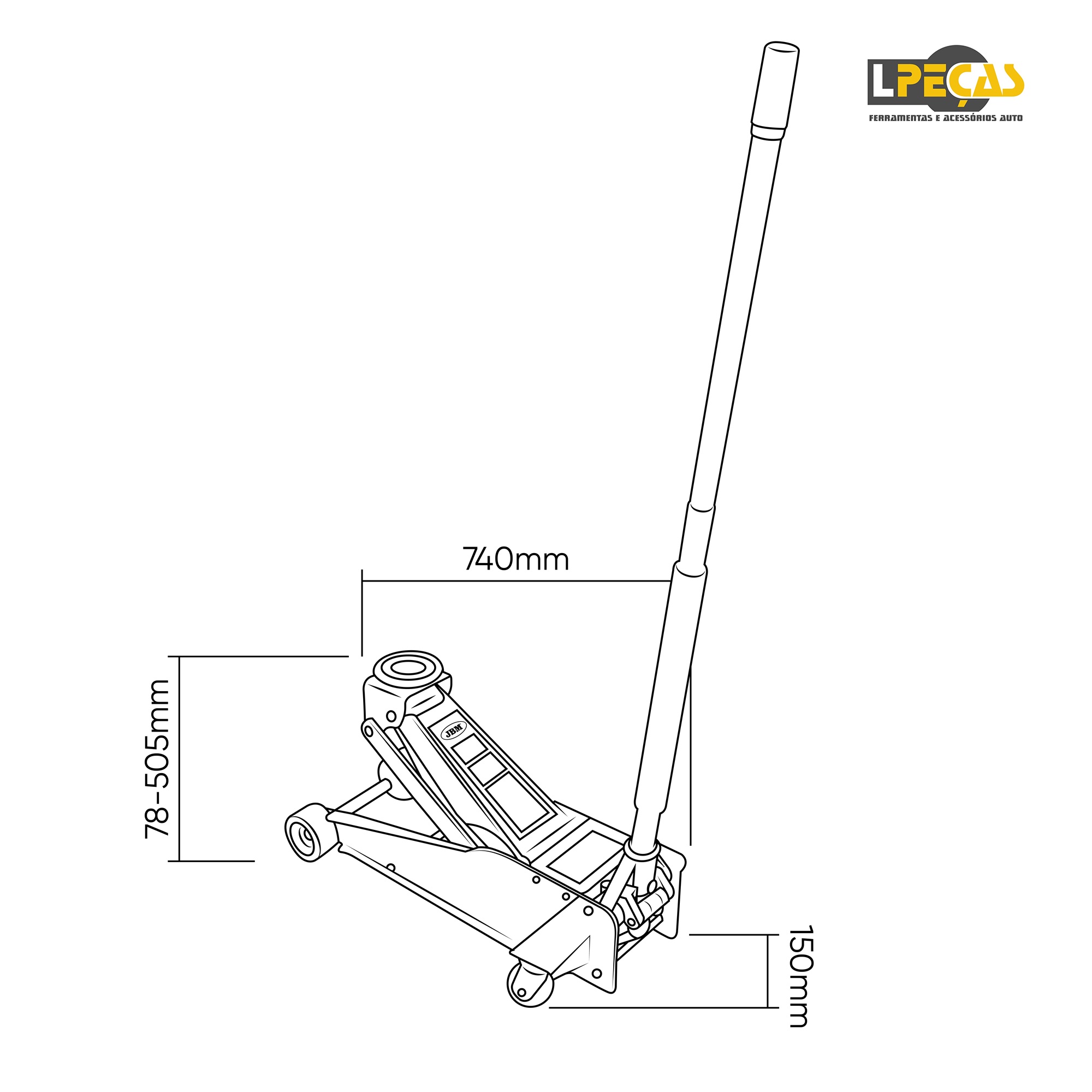 Este macaco hidráulico permite fácil acesso aos pontos de elevação de veículos baixos, garantindo um levantamento seguro e eficiente.