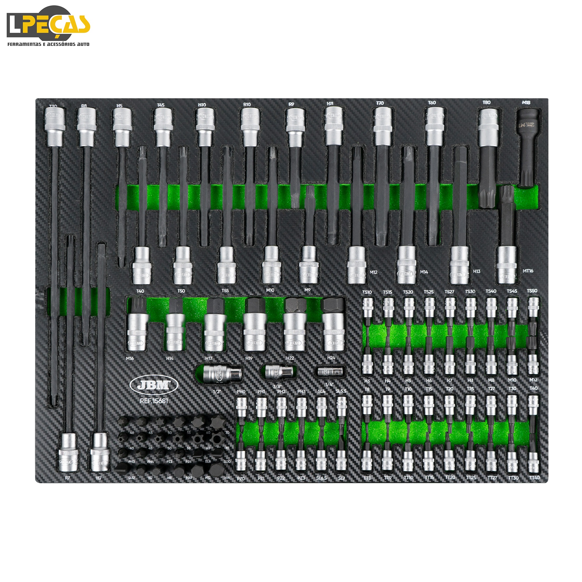 – Torx: T30 (300mmL), T40, T45, T50, T55, T60, T60, T70 (140mmL), T80 (100mmL).