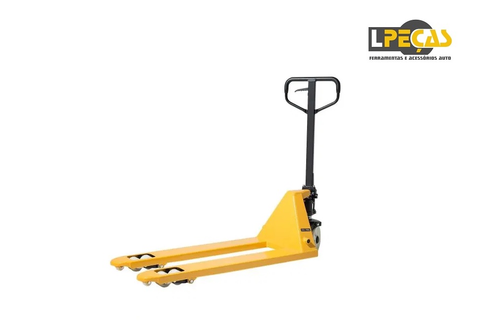 Porta-paletes robusto com capacidade de carga até 2.500 kg, ideal para uso intensivo em armazéns e ambientes industriais exigentes. Construído com materiais de alta durabilidade, garante fiabilidade e longa vida útil. Equipado de série com rodas de direção em nylon e rolos simples de carga. O design ergonómico do manípulo proporciona uma operação confortável e segura, reduzindo o esforço do operador mesmo em jornadas prolongadas.